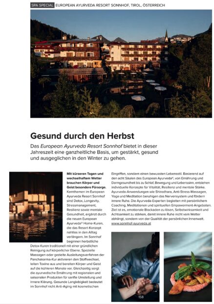 Das European Ayurveda Resort Sonnhof im österreichischen Männermagazin „Wiener“