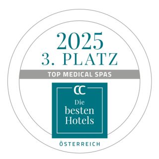 Das Magazin Connoisseur Circle, Marktführer unter den hochwertigen Reisemagazinen im deutschsprachigen Raum, zeichnet jährlich „Die besten Hotels Österreichs“ in 13 Kategorien aus. Im Jahr 2021 konnten wir erneut überzeugen und wurden mit dem 2. Platz in der Kategorie TOP MEDICAL SPA ausgezeichnet.